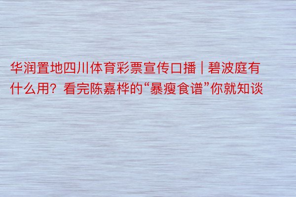 华润置地四川体育彩票宣传口播 | 碧波庭有什么用?看完陈嘉桦的“暴瘦食谱”你就知谈