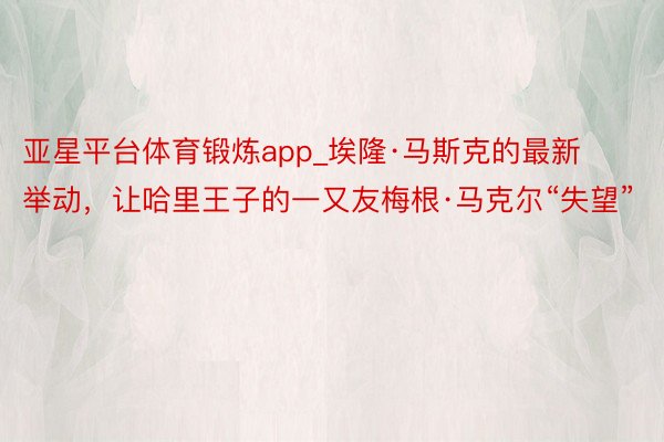 亚星平台体育锻炼app_埃隆·马斯克的最新举动,让哈里王子的一又友梅根·马克尔“失望”