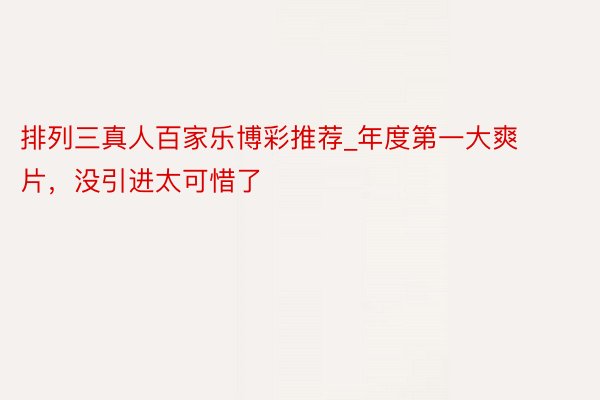 排列三真人百家乐博彩推荐_年度第一大爽片,没引进太可惜了