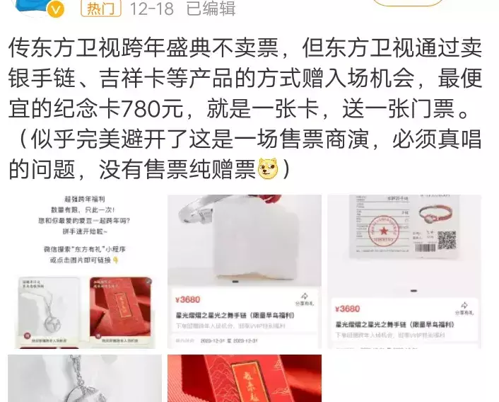 我之是以如斯说,是因为东方的跨年演唱会固然报备的是买卖性上演,但额外鸡贼地遴荐“不卖票”,让珠宝告白商来提拔,马上免费赠票。