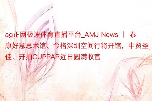 ag正网极速体育直播平台_AMJ News 丨 泰康好意思术馆、今格深圳空间行将开馆,中贸圣佳、开拍CUPPAR近日圆满收官